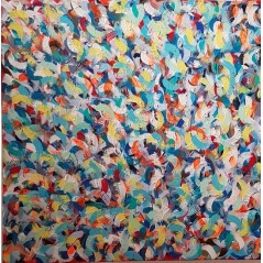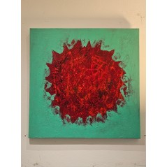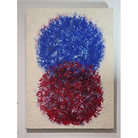 Tableau contemporain abstrait peint par Guillaume Marchat. Abstraction en bleu avec cadre vert. Peinture douce avec une harmonie entre le bleu et le vert