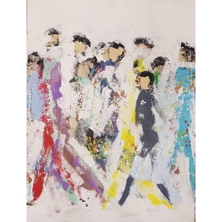 Oeuvre contemporaine unique, peinture acrylique sur toile 100x73cm peinte par l'artiste peintre Guillaume Marchat. cette tête s'inspire de la douceur des têtes de Modigliani