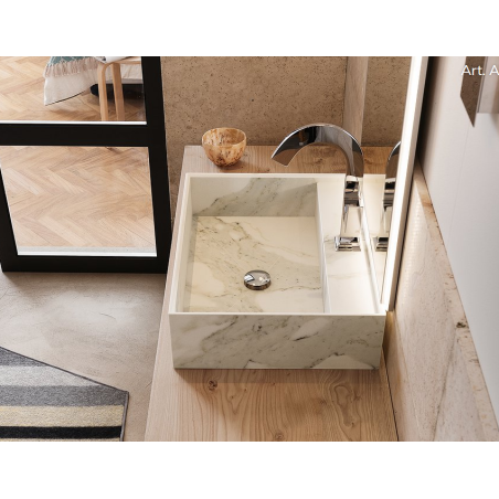 Vasque imitation granit gris mat rectangulaire à poser sans trop-plein dimensions intérieures: largeur 57.6cm, profondeur 34.7cm, hauteur 18cm, dimensions extérieures: largeur 60.2cm, profondeur 46cm, hauteur 27cm, vendue sans bonde.