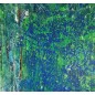 Tableau contemporain abstrait peint par Guillaume Marchat. Des lignes rouges noir blanc jaune, recouvertes par une peinture verte puis par des traits bleus, donne à ce tableau une belle harmonie et une sensation de mouvement.