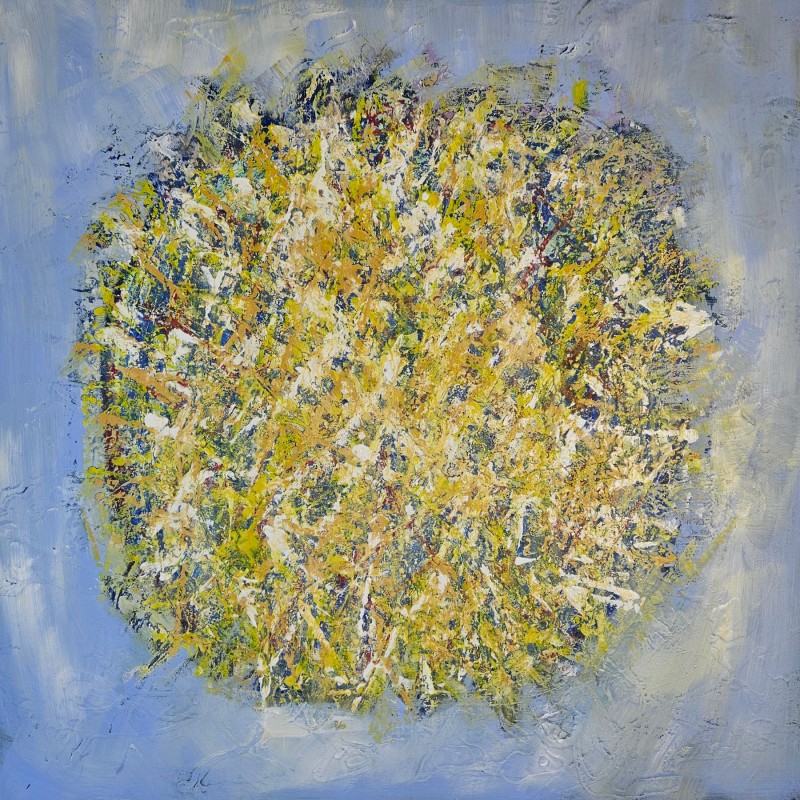 Ce tableau peint par Guillaume Marchat symbolise le Big Bang, la création de l'univers, de la lumière, du temps, de la vie, il y a 13.7 milliards d'années. C'est l'explosion primitive représentée sur cette toile par une forte épaisseur de peinture de différentes couleurs de la partie centrale, qui contient toute la matière de notre univers concentrée dans un tout petit volume. Le jaune et le blanc couleurs prédominantes de la partie centrale semble exploser sur le fond bleu clair
