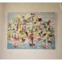 Tableau contemporain mi figuratif mi abstrait peint par Guillaume Marchat, représentant l’ile de Madère au Portugal. Peinture très lumineuse suggérant la végétation luxuriante de l’ile