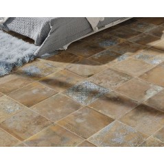 Carrelage en grès cérame émaillé imitation pierre ou terre cuite ancienne, épaisseur 10mm, peut être posé au sol et au mur dans toutes les pièces de la maison. Chaque boite contient 9 carreaux soit 1m2. Il existe 8 décors différents.