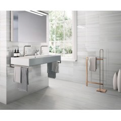 Carrelage en grès cérame rectifié poli (brillant), imitation marbre, épaisseur 10mm, peut être posé au sol et au mur dans toutes les pièces de la maison.