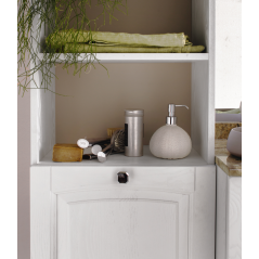 - un meuble de largeur 250cm, profondeur 56cm et hauteur 210cm, en frêne laqué blanc mat, composé de 2 colonnes largeur 50cm, hauteur 194.3cm, profondeur 37cm avec 4 étagères et deux tiroirs, un meuble sous vasque largeur 140cm hauteur 75cm profondeur 50cm avec quatre portes; un plan en marbre largeur 140cm profondeur 51.5cm épaisseur 2cm, vasque en céramique 55x17x50cm.