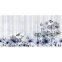 Papier peint vinyle pour mur de salle de bain FLOWERLINES_INKLSMQ2003 fleurs noires sur fond bleu